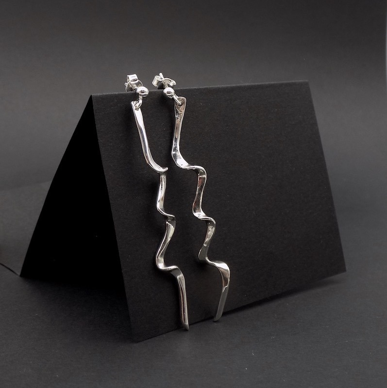 Formées à partir d’un jonc plein de 2mm puis façonnées au marteau de manière à de donner cet effet de vague. Chaque pièce est unique car faite indépendamment des autres. L’attache boule est sur une tige fermée d’un poussoir papillon. Ce type d’attache lui confère une certaine sécurité.